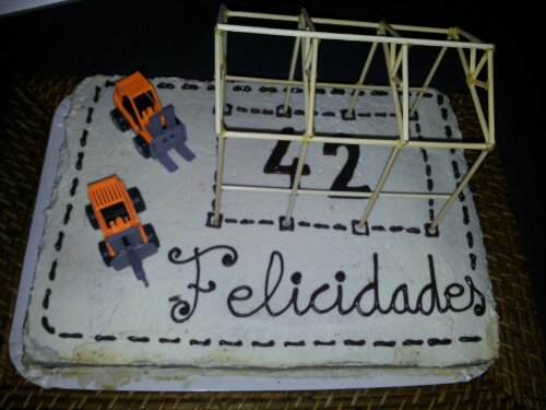 Hoy hemos celebrado el cumple de Antonio, un amigo, y para variar la artista de Chary, le ha preparado esta bonita tarta con estructura.incluida, una pasada